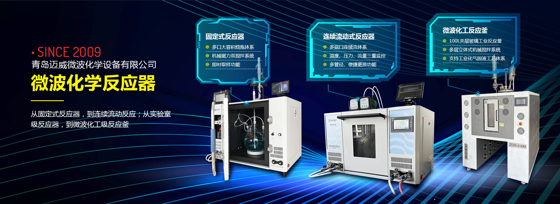 青島邁威微波化學設備有限公司創立于2009年9月,公司坐落于青島國家高新技術產業開發區,是一家專業從事微波技術在化學和化工領域應用的科技型企業。邁威堅持“微波化學”作為產品設計和工藝研發的學科基礎,致力于滿足用戶對化學實踐中“效率、速率、收率”的需求,擁有“開放式、密閉式、連續流動、微量以及高溫處置”五大類微波化學反應體系,近百個產品種類,滿足了用戶對于化學、化工、新材料、生物制藥以及能源和環保領域的產品需求。